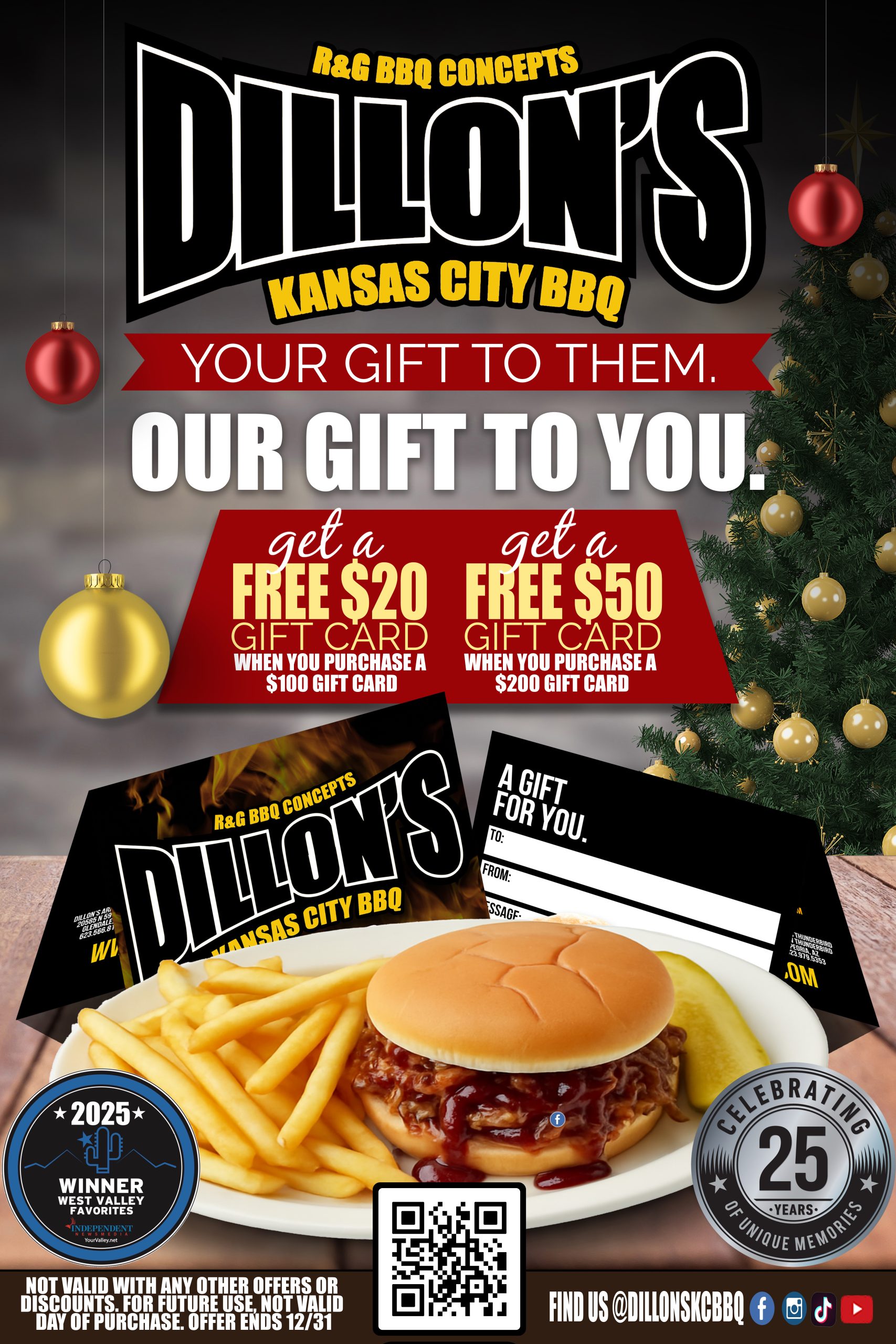 November 29, 2025 Written by Keli Leave a reply Attachment size: Full size is 1707 × 2560 pixels permalink 2025 GIFT CARD POSTER_24X36 Dillon’s KC BBQ Restaurants and Sports Bar Previous Image